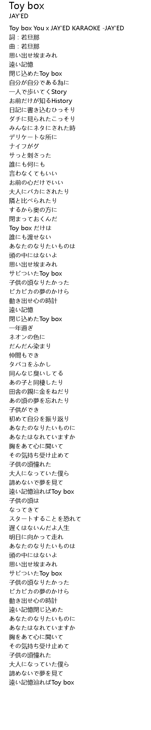 | [00:00.791] | Toy box You x JAY'ED KARAOKE -JAY'ED |