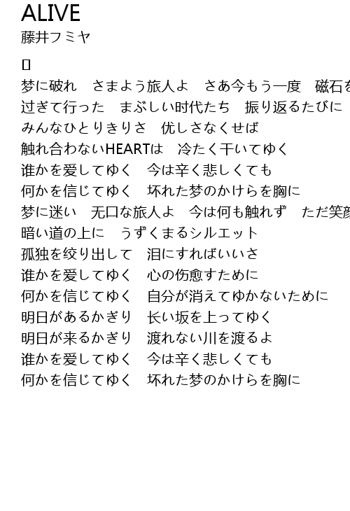 | 何かを信じてゆく 坏れた梦のかけらを胸に |