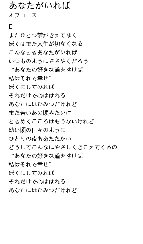 | 歌曲 | あなたがいれば |