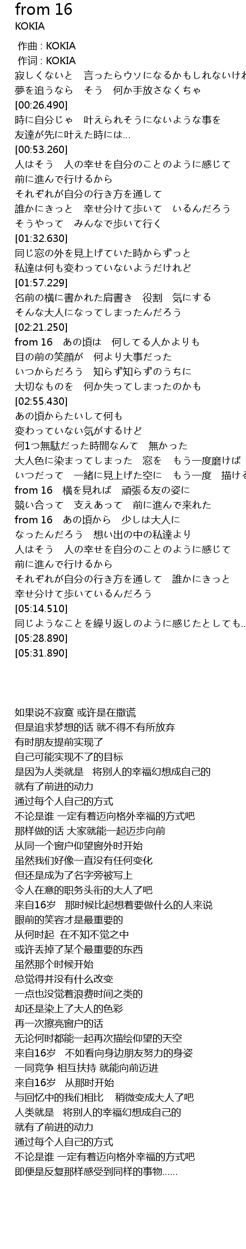 | [04:31.440] | from 16 あの頃から 少しは大人に |
