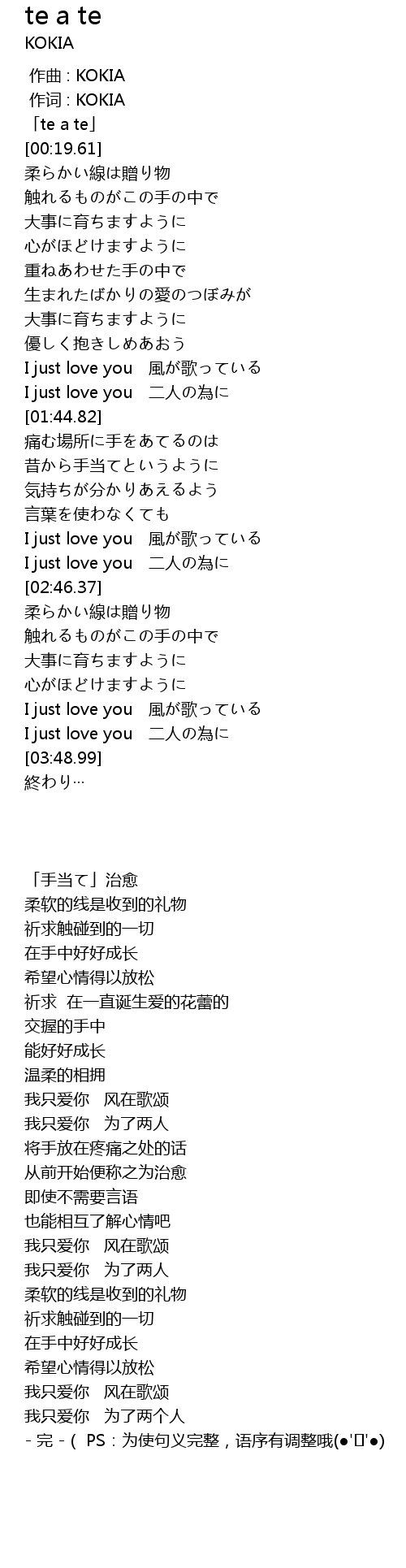 | [03:34.53] | I just love you 二人の為に |