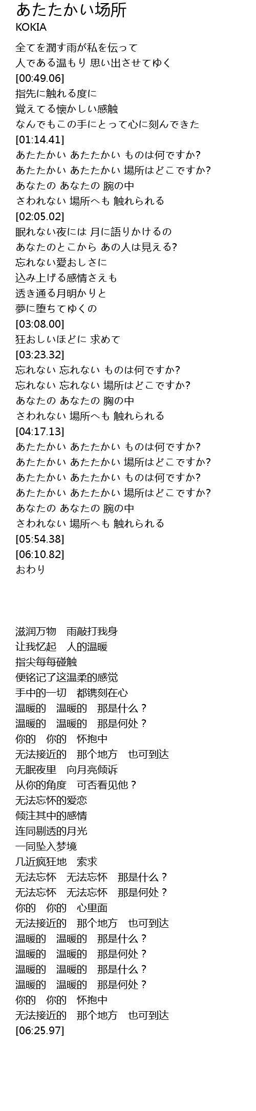 | [04:50.80] | あたたかい あたたかい 場所はどこですか? |
