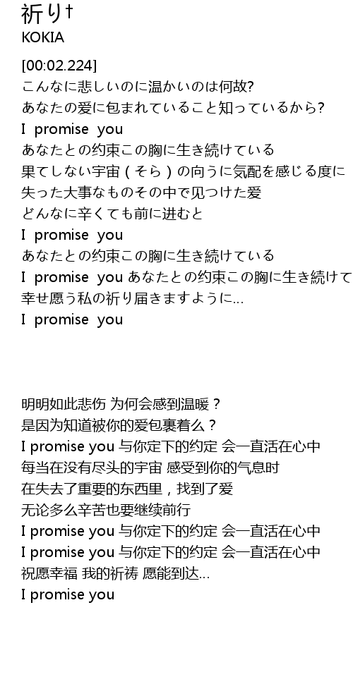 | [02:51.156] | I promise you 与你定下的约定 会一直活在心中 |