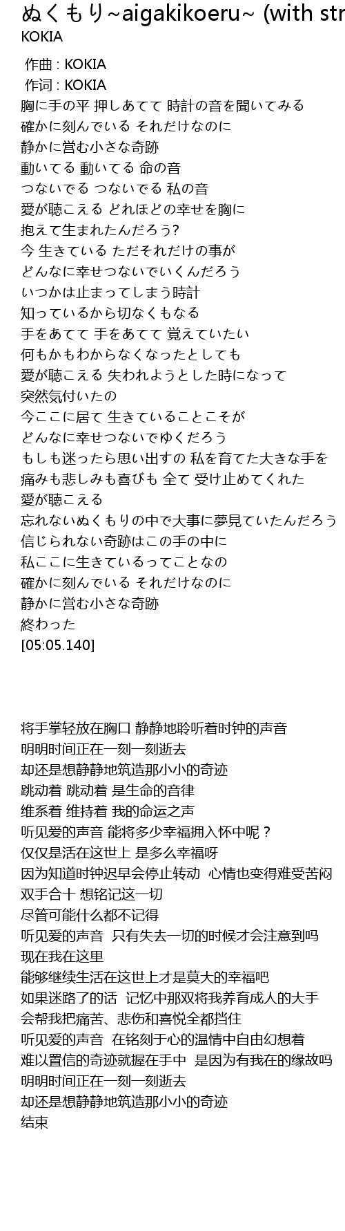 | [01:04.200] | 動いてる 動いてる 命の音 |