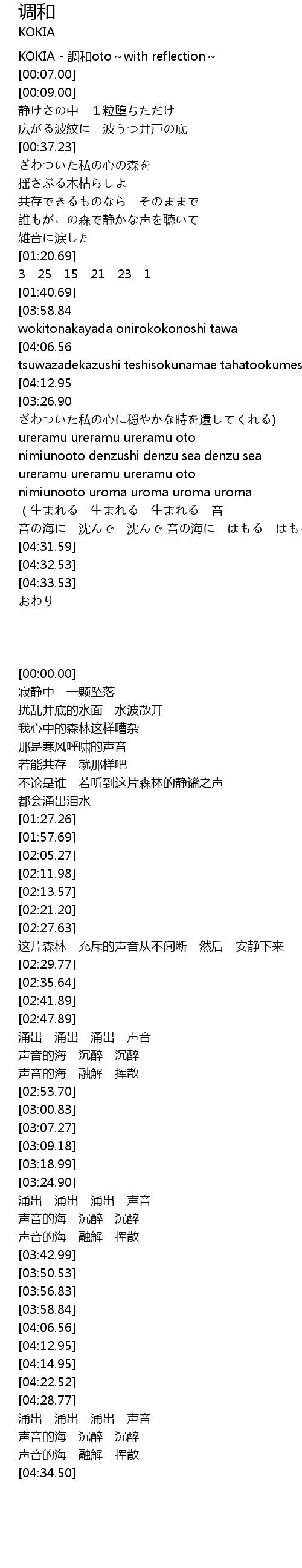 | [00:00.00] | KOKIA - 調和oto~with reflection~ |