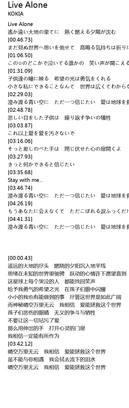 | [00:00.43] | Live Alone |