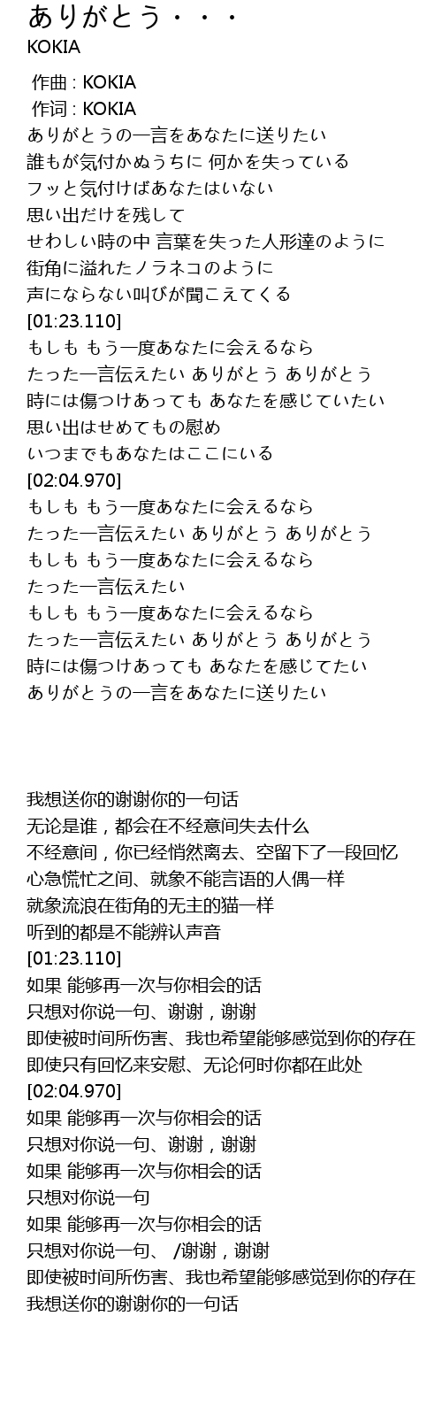 | [00:01.210] | ありがとうの一言をあなたに送りたい |
