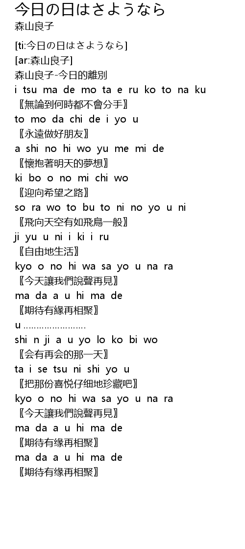 | [ti:今日の日はさようなら] | |