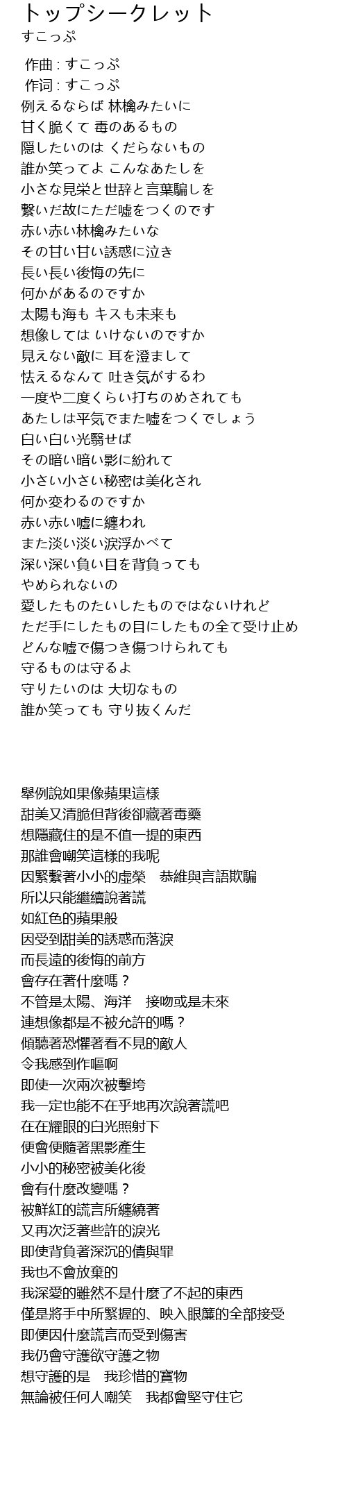 | [02:13.41] | 小さい小さい秘密は美化され |