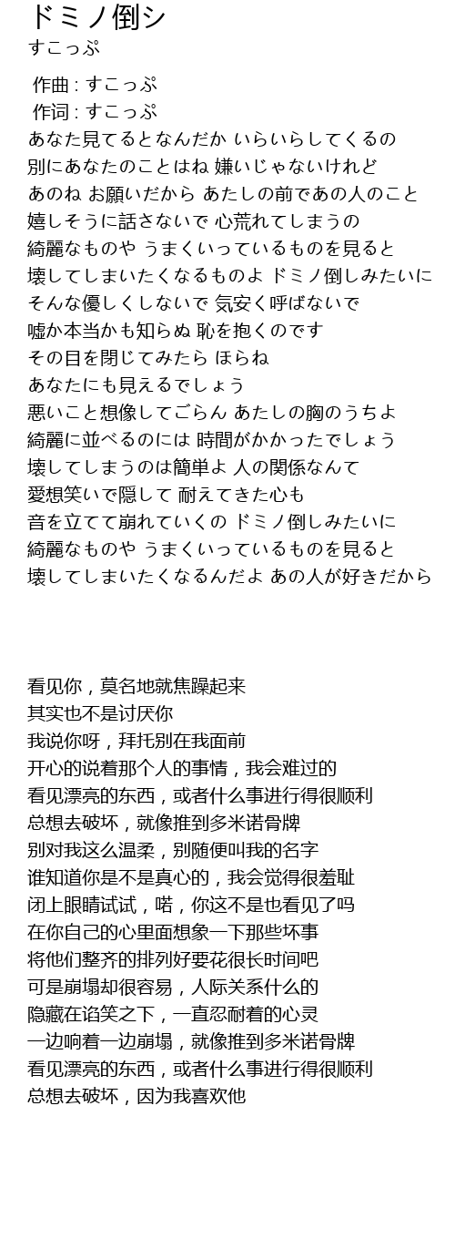 | [02:50.79] | 一边响着一边崩塌,就像推到多米诺骨牌 |