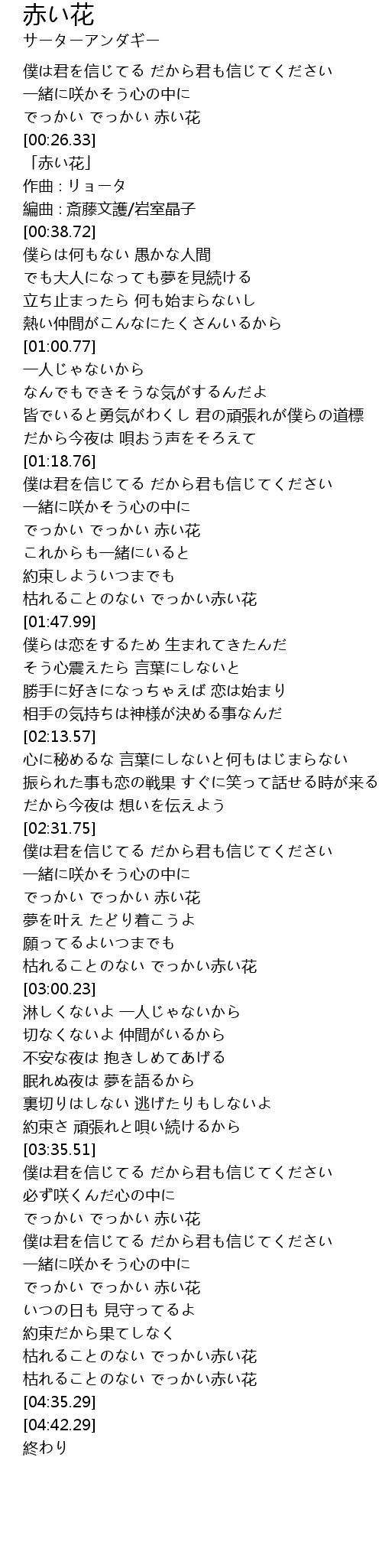 | [04:16.60] | でっかい でっかい 赤い花 |