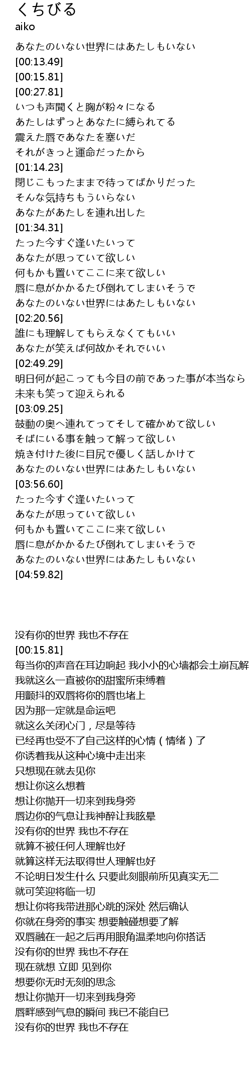 | [04:45.64] | あなたのいない世界にはあたしもいない |