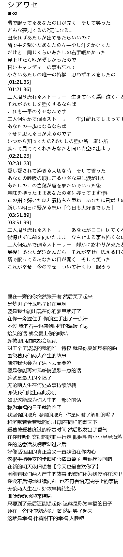 | [04:40.61] | これが幸せ 今の幸せ ついて行くわ 眠ろう |