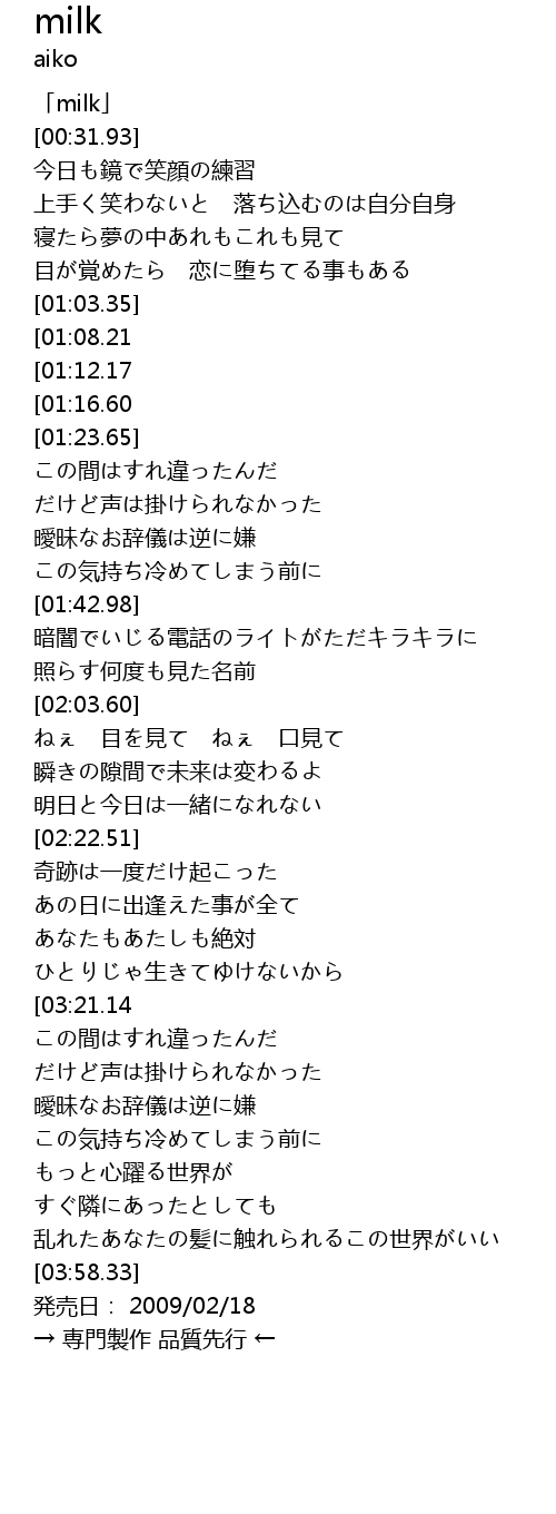 | [00:01.93] | 「milk」 |