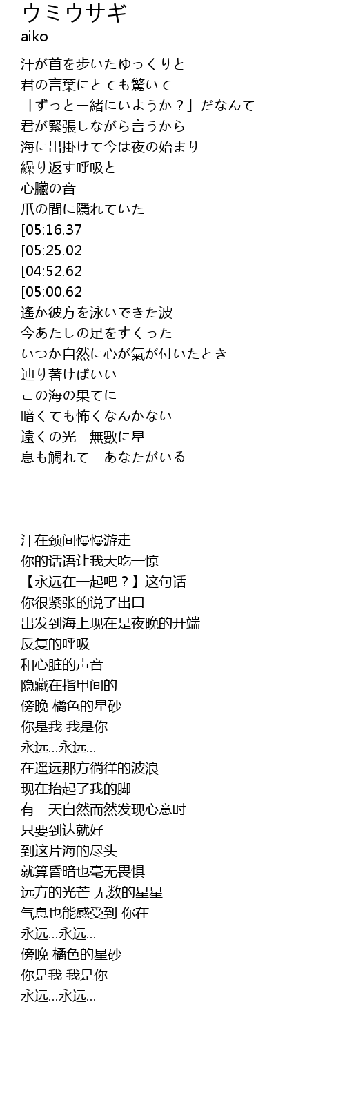 | [05:16.37] | 傍晚 橘色的星砂 |