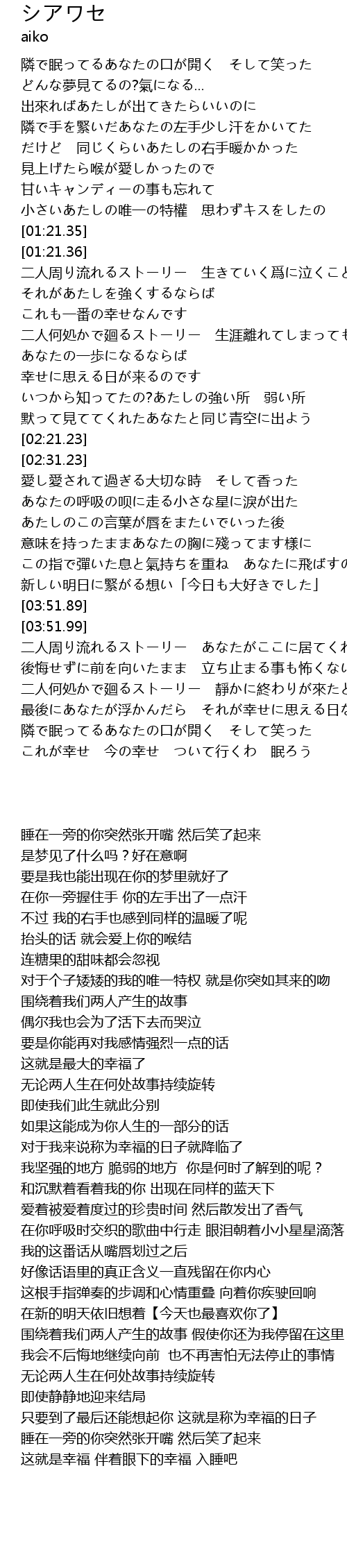 | [04:40.61] | これが幸せ 今の幸せ ついて行くわ 眠ろう |