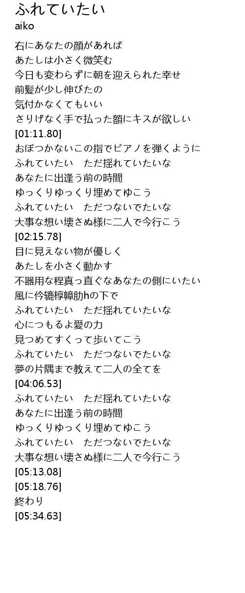 | [01:19.92] | ふれていたい ただ揺れていたいな |