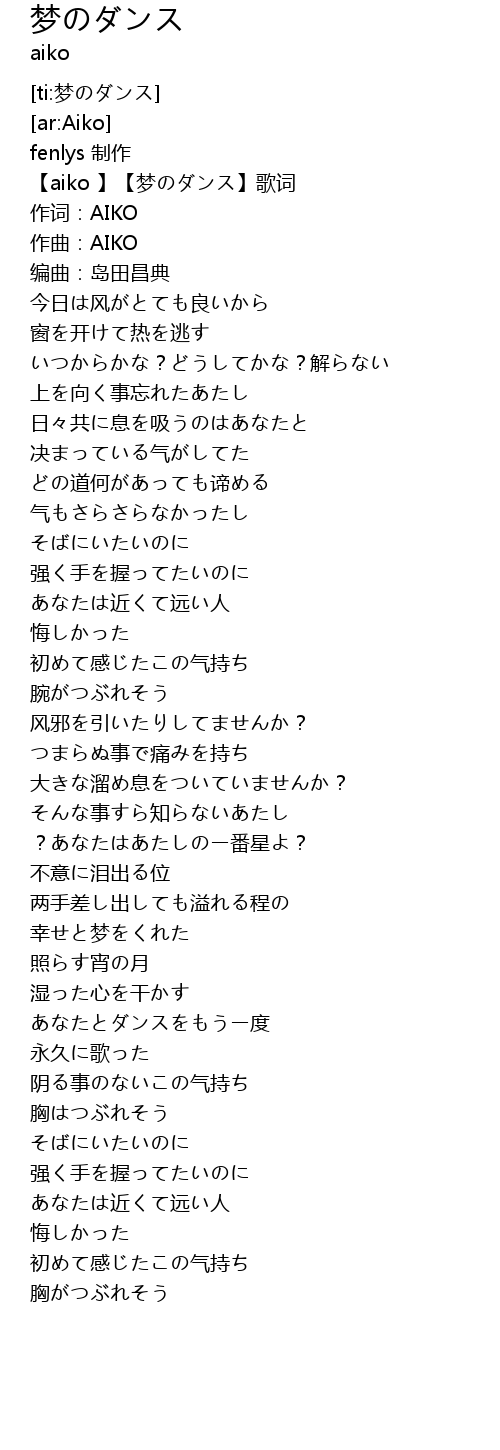 | [00:05.66] | 【aiko 】【梦のダンス】歌词 |