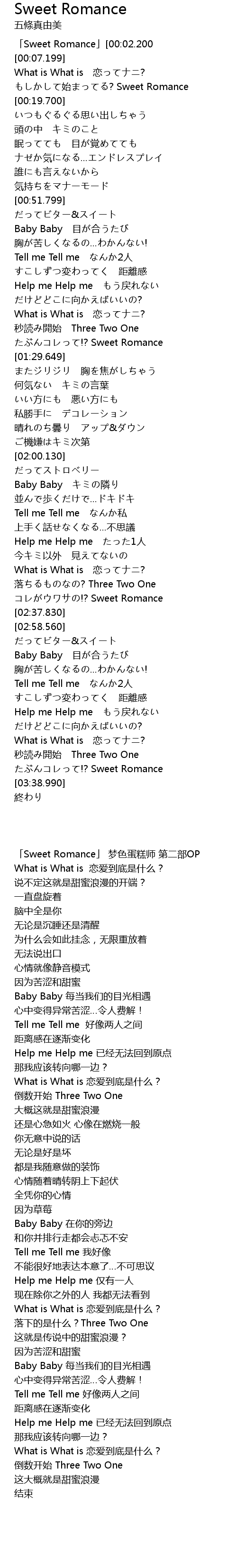 | [00:02.200] | 「Sweet Romance」 梦色蛋糕师 第二部OP |