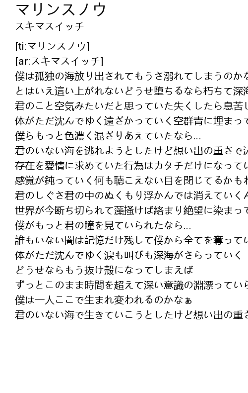| [03:46.156] | 体がただ沈んでゆく涙も叫びも深海がさらっていく |