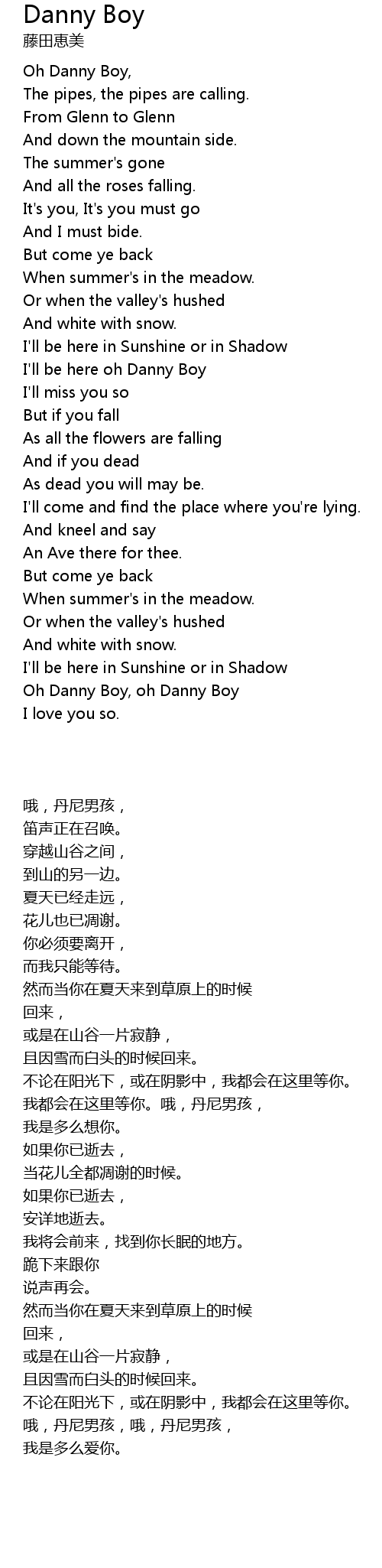 Oh Danny Boy, oh Danny Boy |