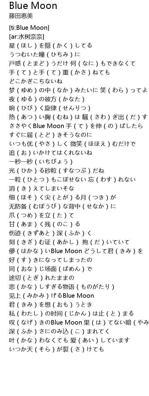 | [03:16.37] | jiàn shàng Blue Moon jūn xiǎng |