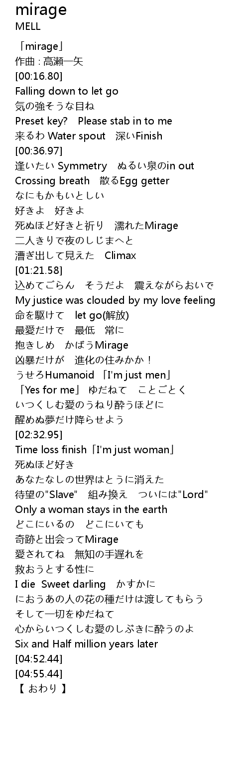 | [00:01.80] | 「mirage」 |