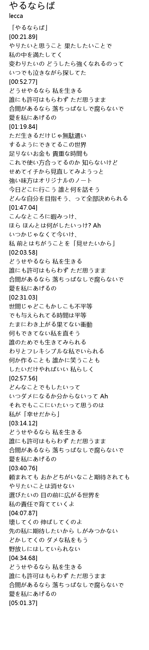 | [02:11.52] | 誰にも許可はもらわず ただ思うまま |