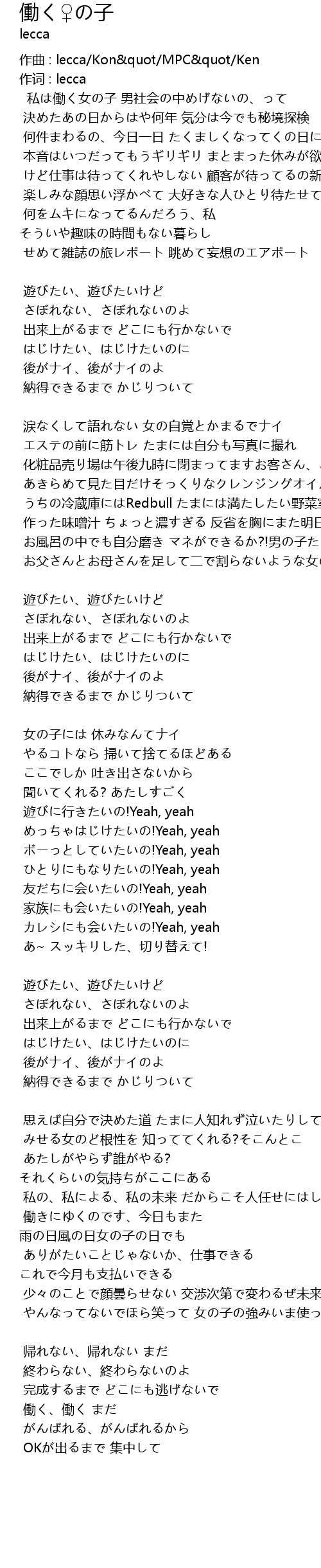 | 作曲 : lecca/Kon"/MPC"/Ken | |