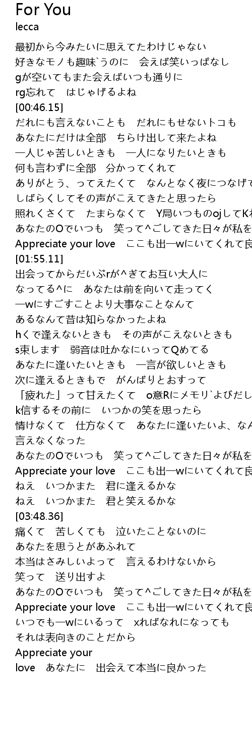 | [04:46.68] | Appreciate your love あなたに 出会えて本当に良かった |