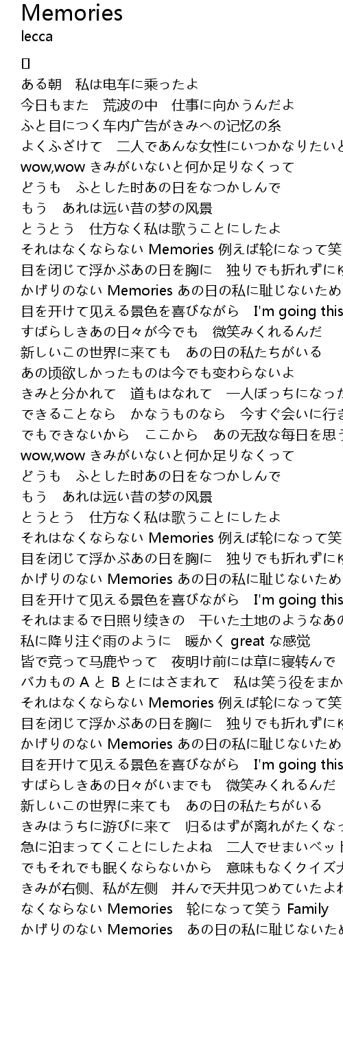 | それはなくならない Memories 例えば轮になって笑う Family | |