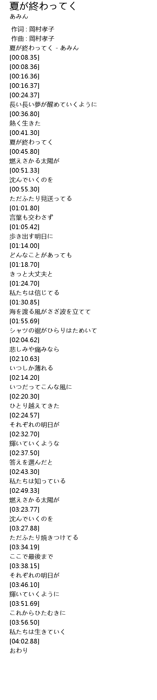| [00:00.35] | 夏が終わってく - あみん |