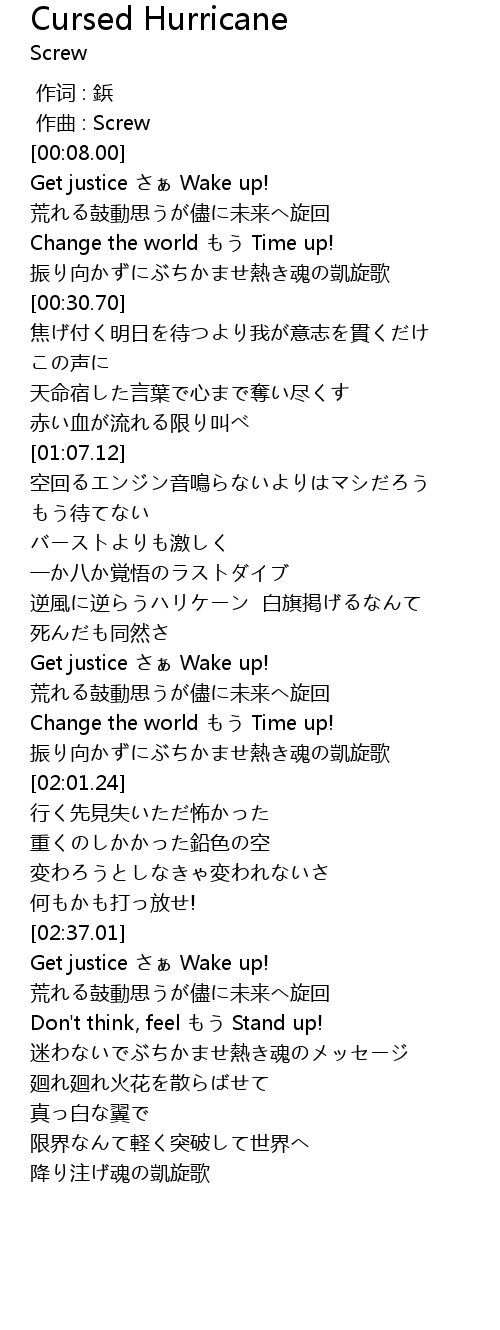 | [02:56.32] | 迷わないでぶちかませ熱き魂のメッセージ |