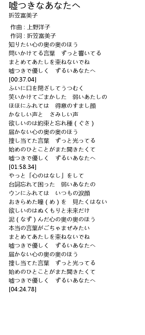 | [03:38.83] | 嘘つきで優しく ずるいあなたへ |