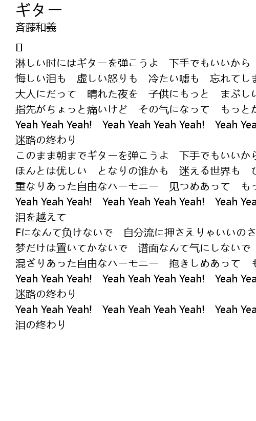| 淋しい时にはギターを弹こうよ 下手でもいいから 愿いを迂めて | |