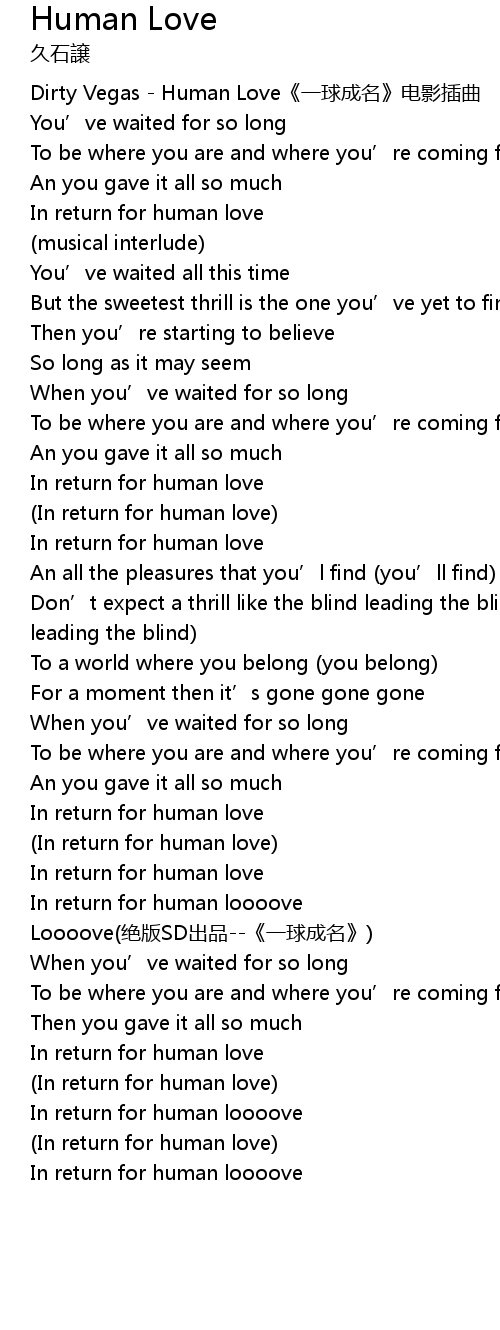 | [00:00.00] | Dirty Vegas Human Love yī qiú chéng míng diàn yǐng chā qǔ |