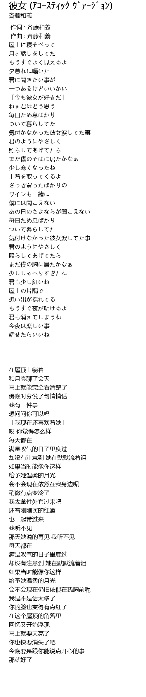 彼女 (アコースティック ヴァージョン) 歌词