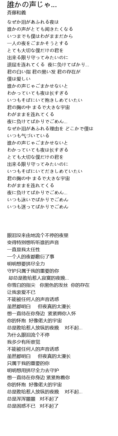 | [03:30.200] | わがままを连れてくる 夜に负けてばかりでごめん… |