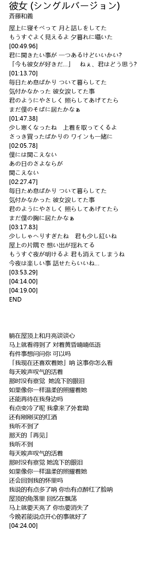 | [02:54.53] | 気付かなかった 彼女涙してた事 |