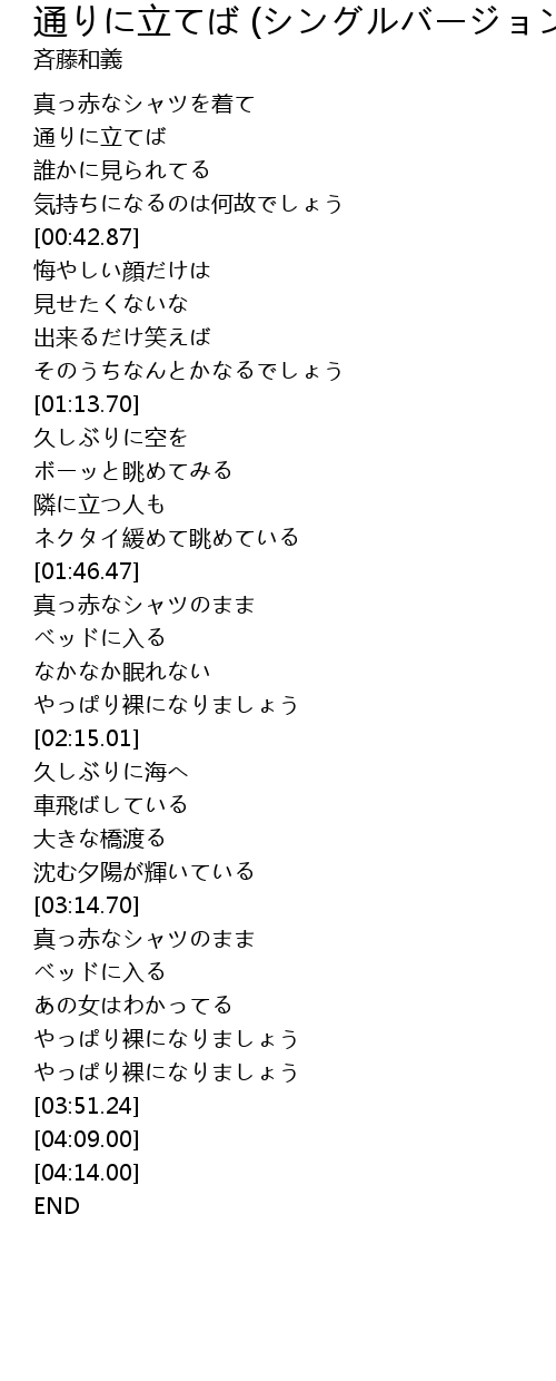 | 歌曲 | 通りに立てば (シングルバージョン) |