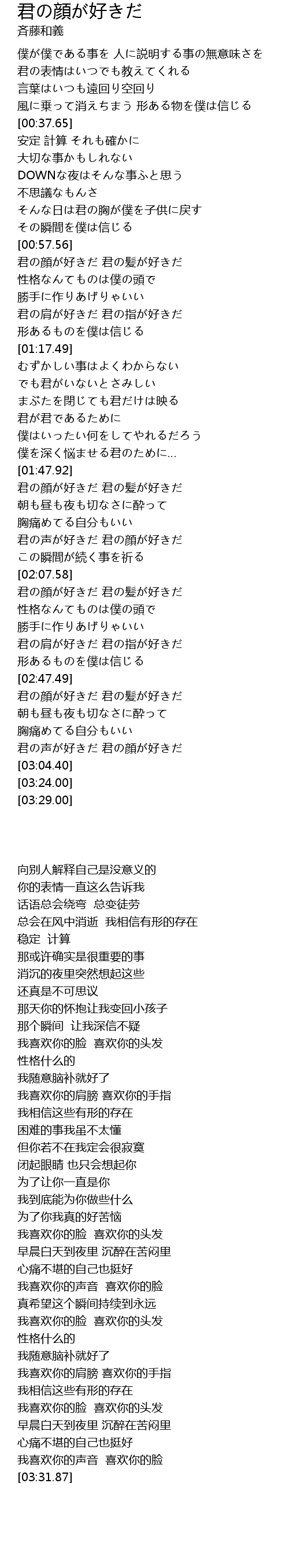 | [00:59.94] | 君の顔が好きだ 君の髪が好きだ |