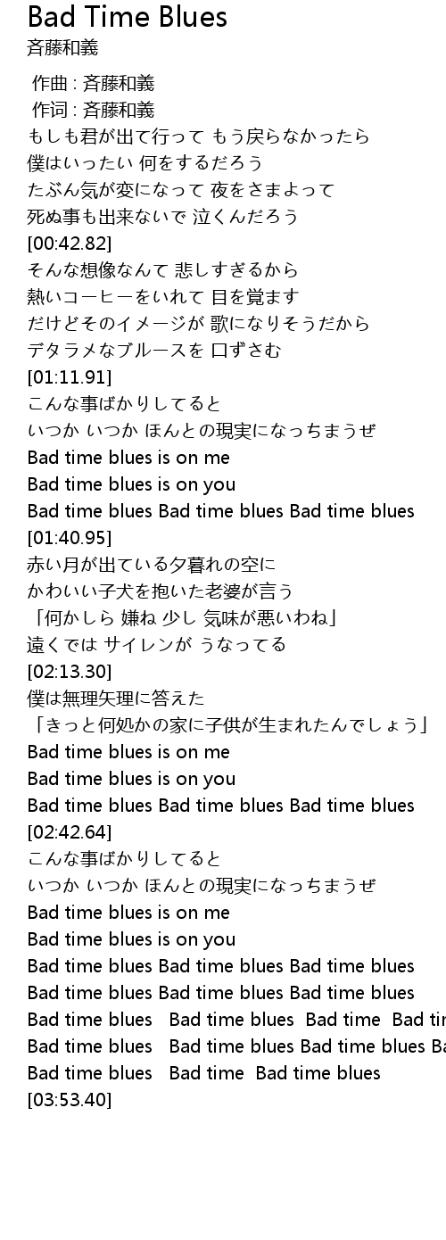 | [03:40.42] | Bad time blues Bad time blues Bad time blues Bad time blues |