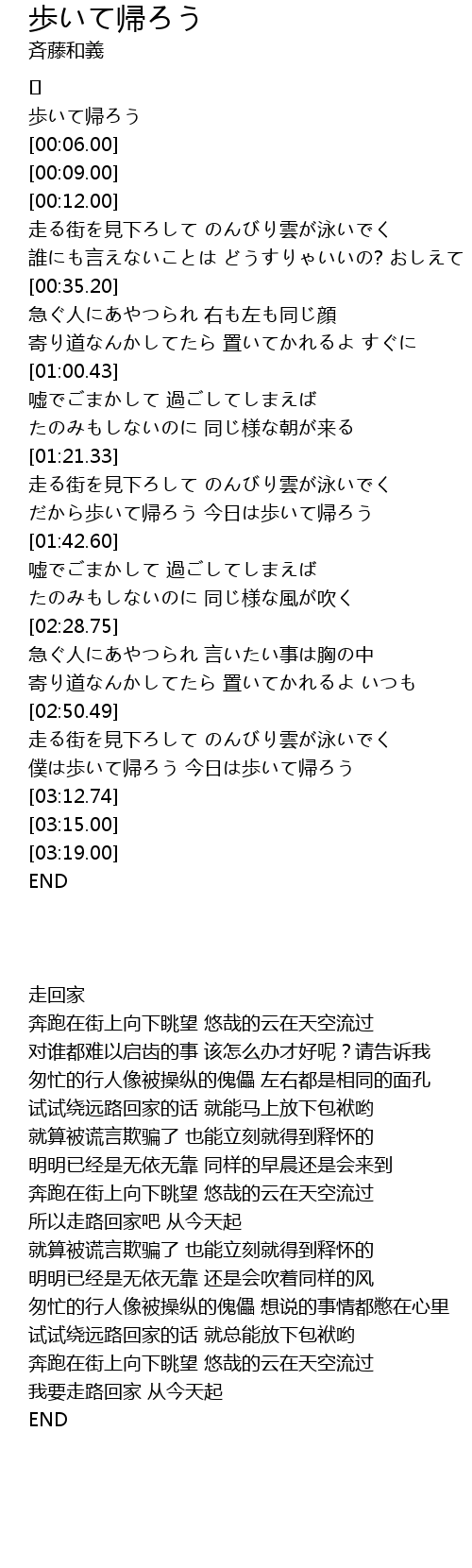 | [00:00.00] | 歩いて帰ろう |