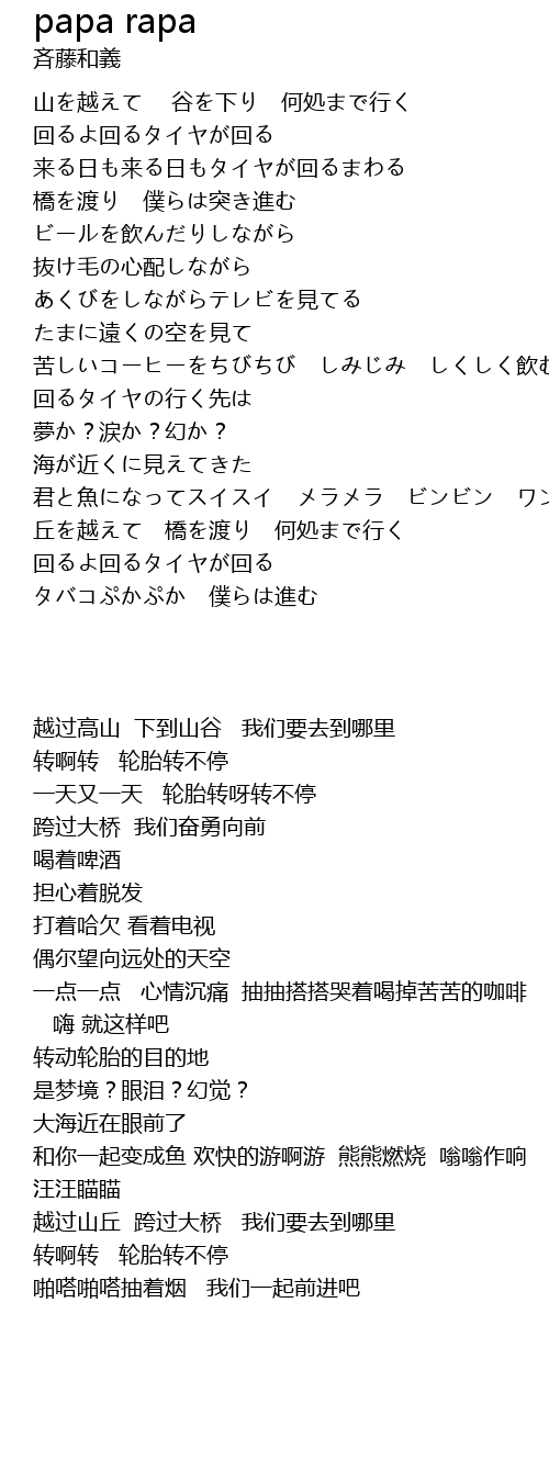 | [00:23.300] | 一天又一天 轮胎转呀转不停 |