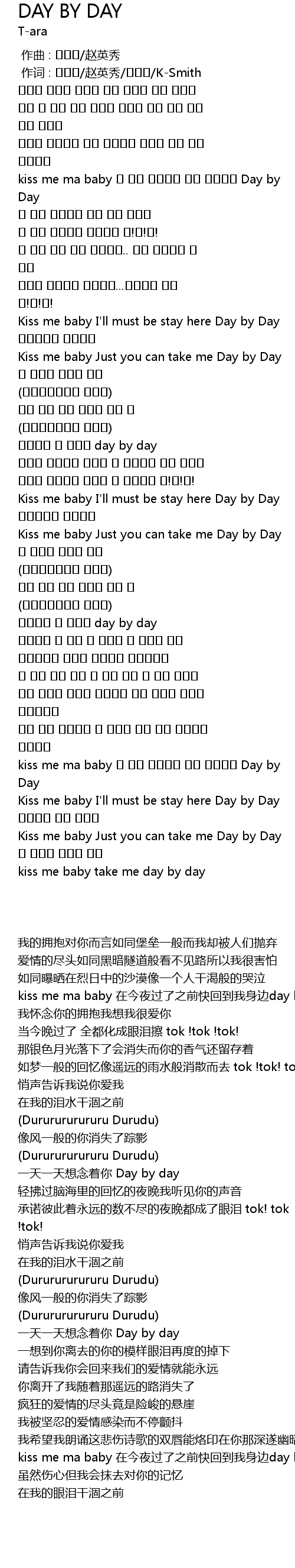 | [03:01.220] | Kiss me baby I' ll must be stay here Day by Day |