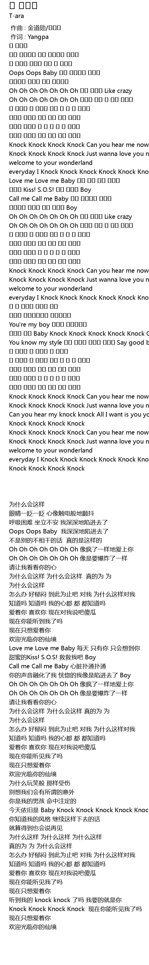 | [02:57.900] | 今天依旧是 Baby Knock Knock Knock Knock Knock Oh |