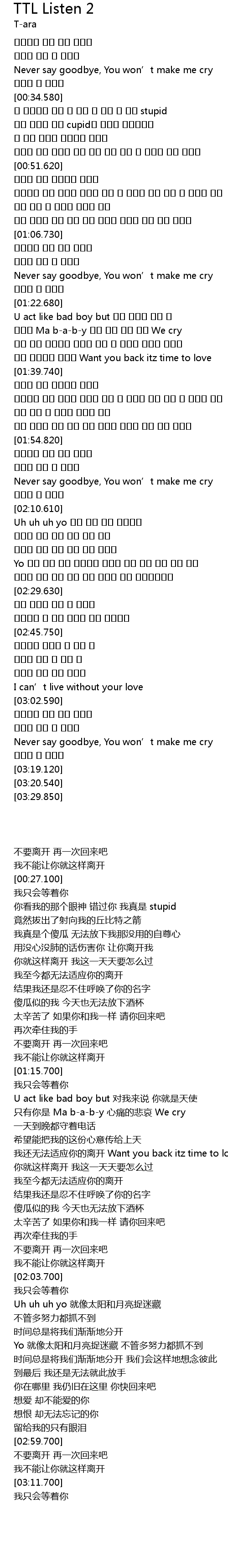 | [00:27.100] | Never say goodbye, You won' t make me cry |