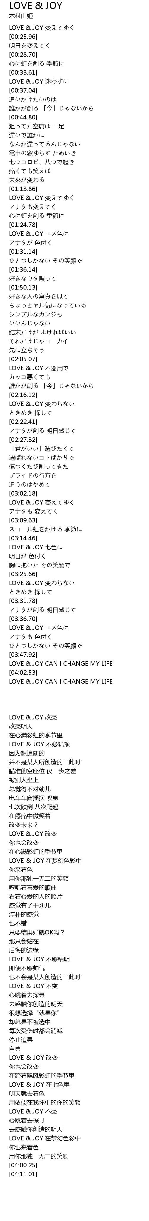 | [04:11.01] | LOVE JOY CAN I CHANGE MY LIFE |