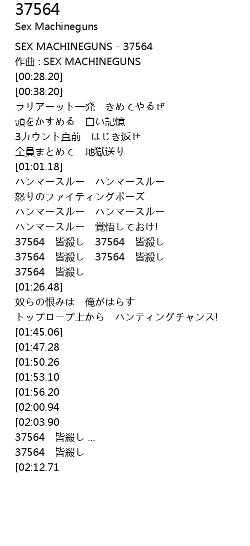 | [00:01.20] | SEX MACHINEGUNS 37564 |