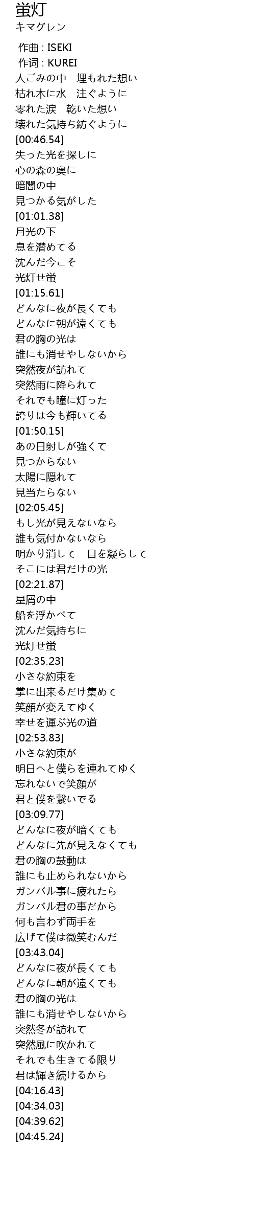 | [01:11.44] | 光灯せ蛍 |